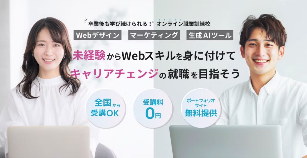 Web系の職種に転職するための知識を身につけるコースです。プログラミング、Webデザイン、WebマーケティングといったWeb系の分野について学べるコースもあります。