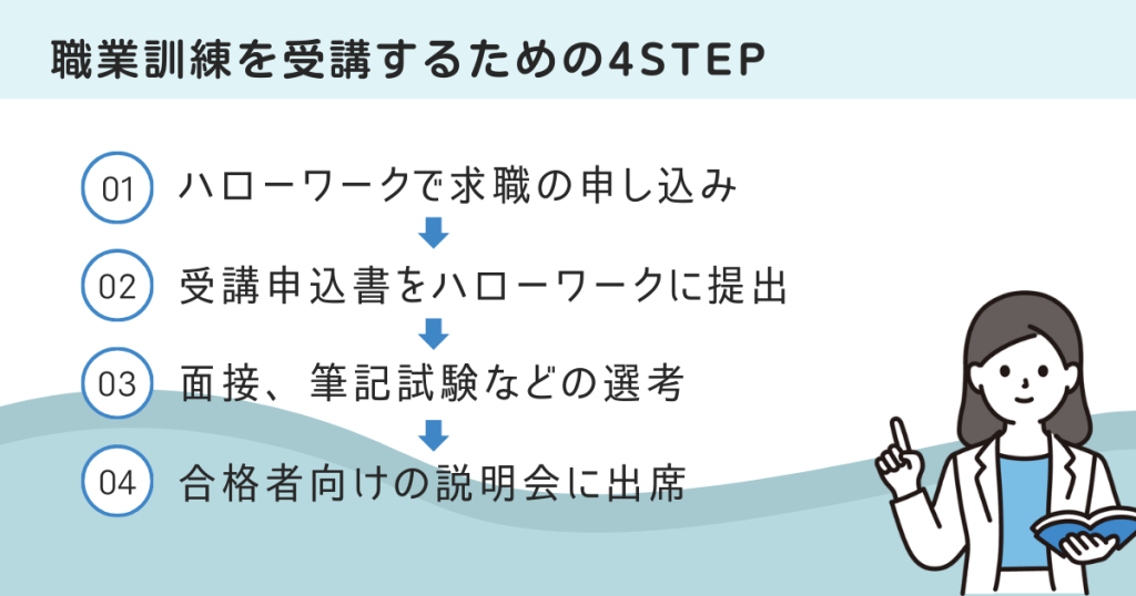 職業訓練を受けるには次の4STEPが必要になります。