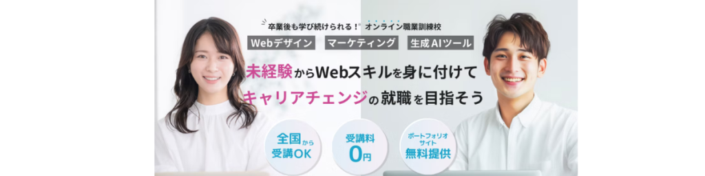 Web系の職種に転職するための知識を身につけるコースです。プログラミング、Webデザイン、WebマーケティングといったWeb系の分野について学べるコースもあります。
