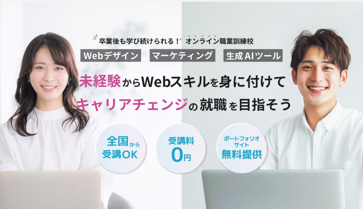 - 受講料0円・ポートフォリオサイト無料提供