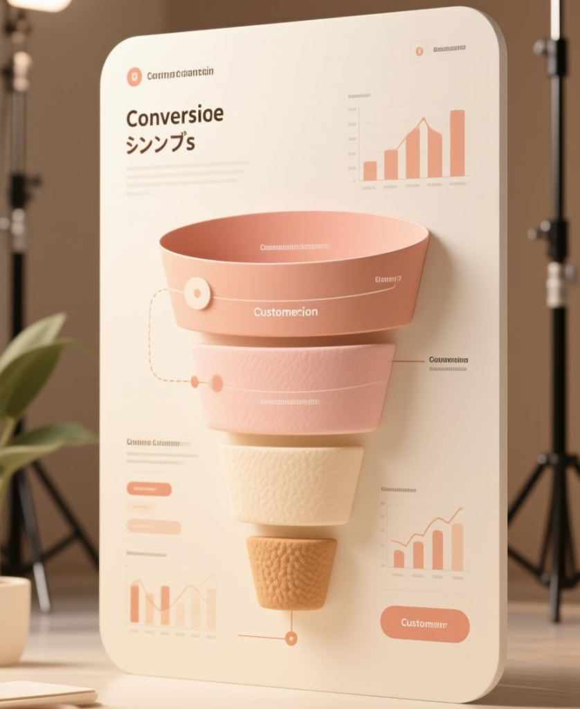 お客さんが商品を知ってから購入するまでの旅(行動の流れ)。認知→比較→検討→購入という流れを設計します。